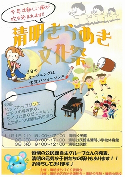 対象は平成28年度清明小学校6年生(平成29年3月卒業)と清明地区にお住いの方です。